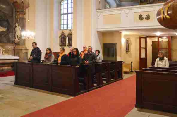 Kostel sv. Andreja Svorada a Beňadika - vpravo je bývalý klášter Velká Skalka (pouť naší farnosti v září 2012)