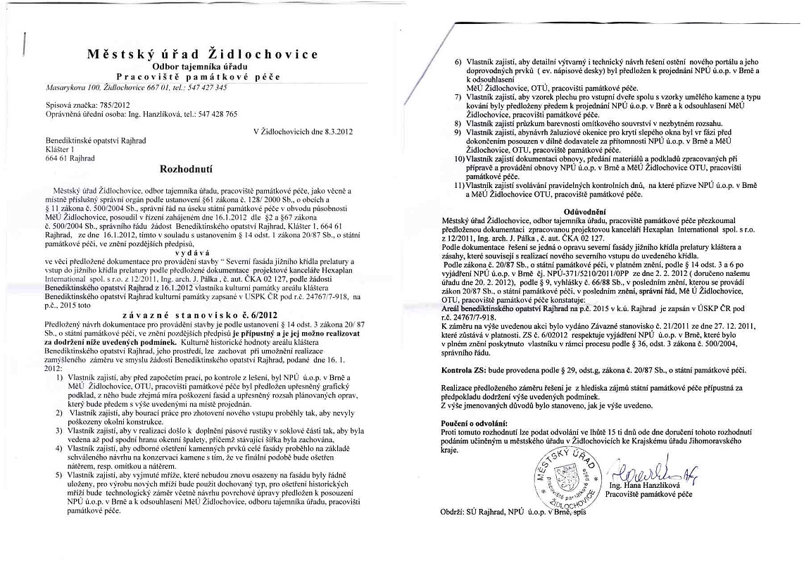 Veřejná zakázka na stavební práce (úplné znění je ve formátu "pdf") s názvem Benediktinské opatství Rajhrad, Muzeum Brněnska - severní fasáda prelatury