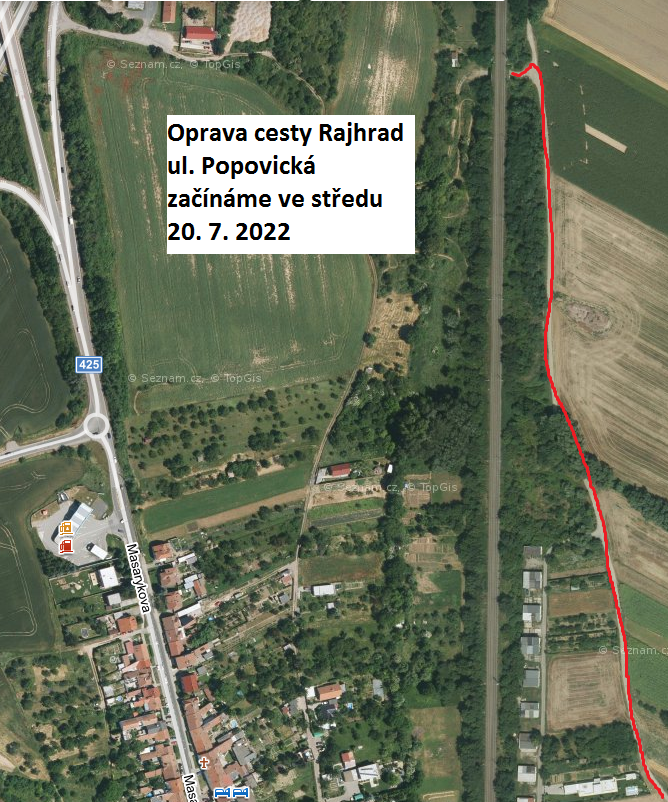 Ve středu 20. 7. 2022 zahájíme opravu povrchu polní cesty Popovická v k. ú. Rajhrad