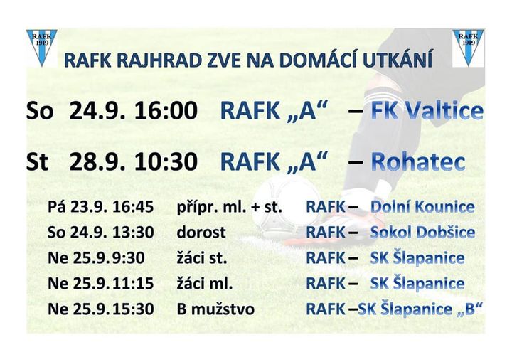 DOMÁCÍ FOTBALOVÁ UTKÁNÍ RAFK - T38/2022