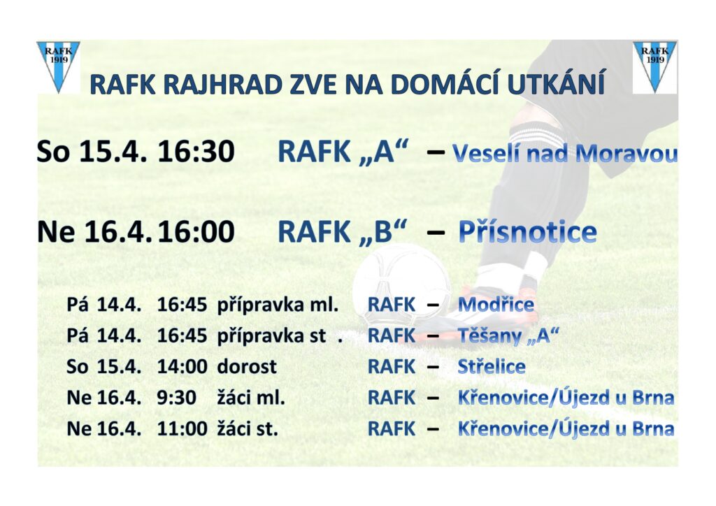 RAFK zve na svá domácí fotbalová utkání