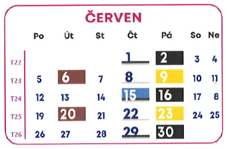 SMĚS BD dle rozpisu: čtvrtek! / SMĚS RD: pátek 2.6., 16.6., 30.6./ BIO: úterý 6.6., 20.6.. / PLAST: pátek 9.6., 23.6. / PAPÍR: čtvrtek 15.6.