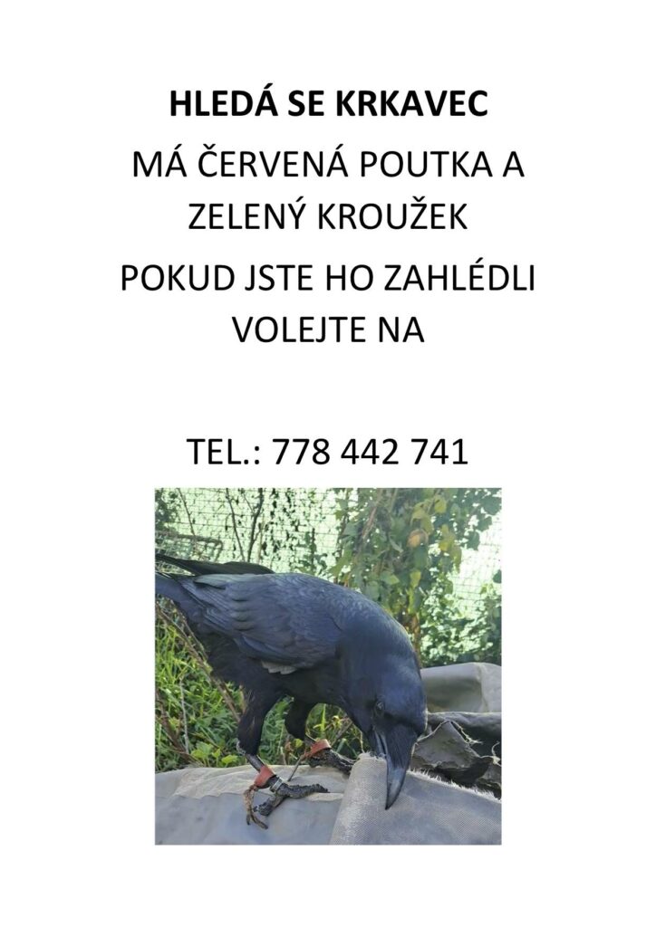 Do okolí Rajhradu zaletěl kroužkovaný krkavec, majitel prosí o ohlášení jeho výskytu.