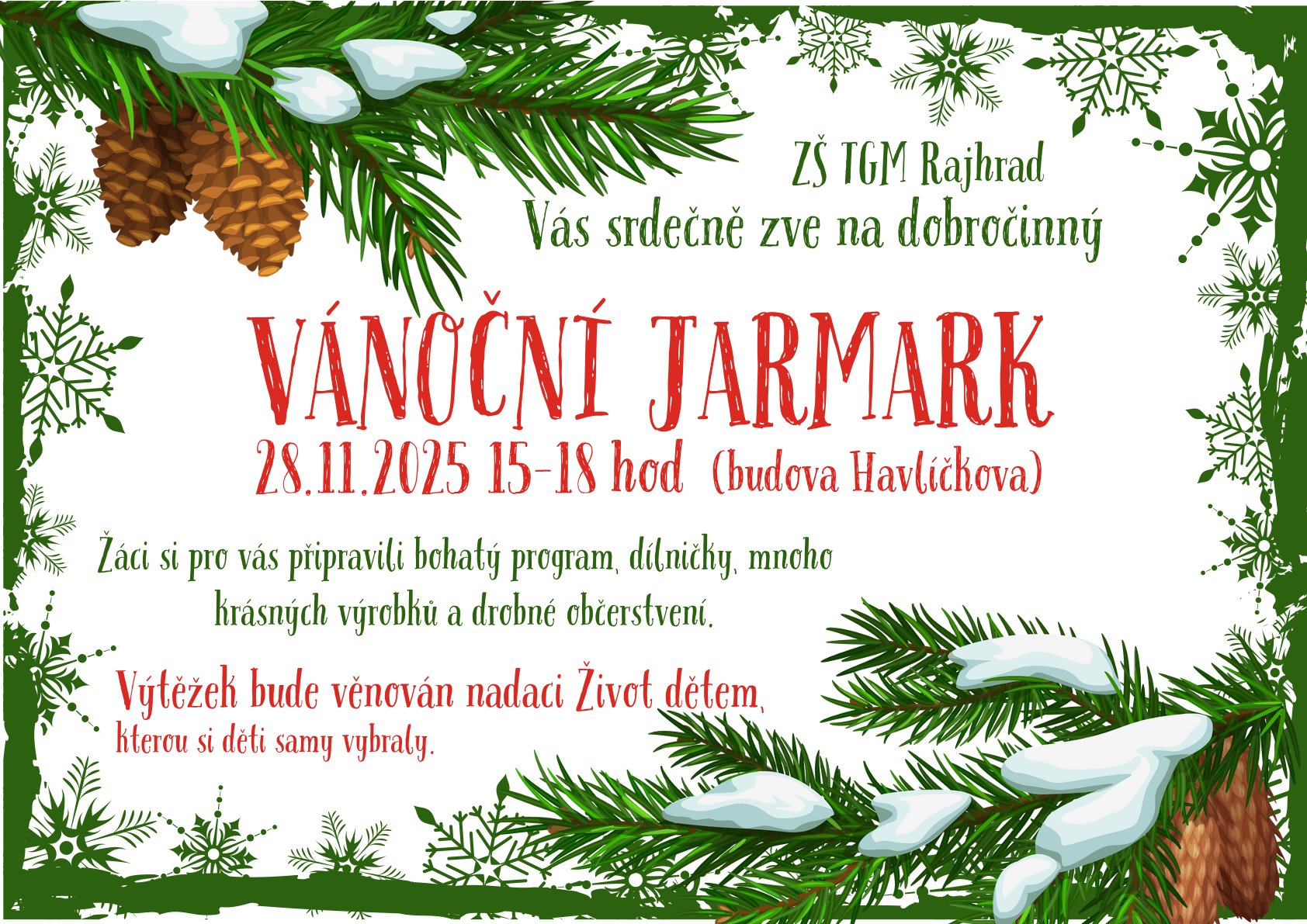 - pátek: ŠKOLNÍ VÁNOČNÍ JARMARK, ZŠ Havlíčkova ul., 15-18 hod.