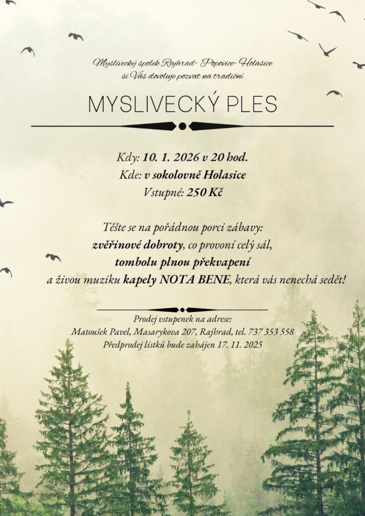 Myslivecký spolek Rajhrad – Popovice – Holasice si Vás dovoluje pozvat na tradiční