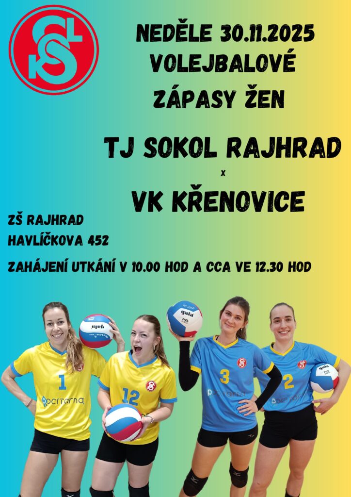 RAJHRAD / sportovní hala / TJ Sokol Rajhrad x VK Křenovice / 10 hod., 12.30 hod / 30.11.2025