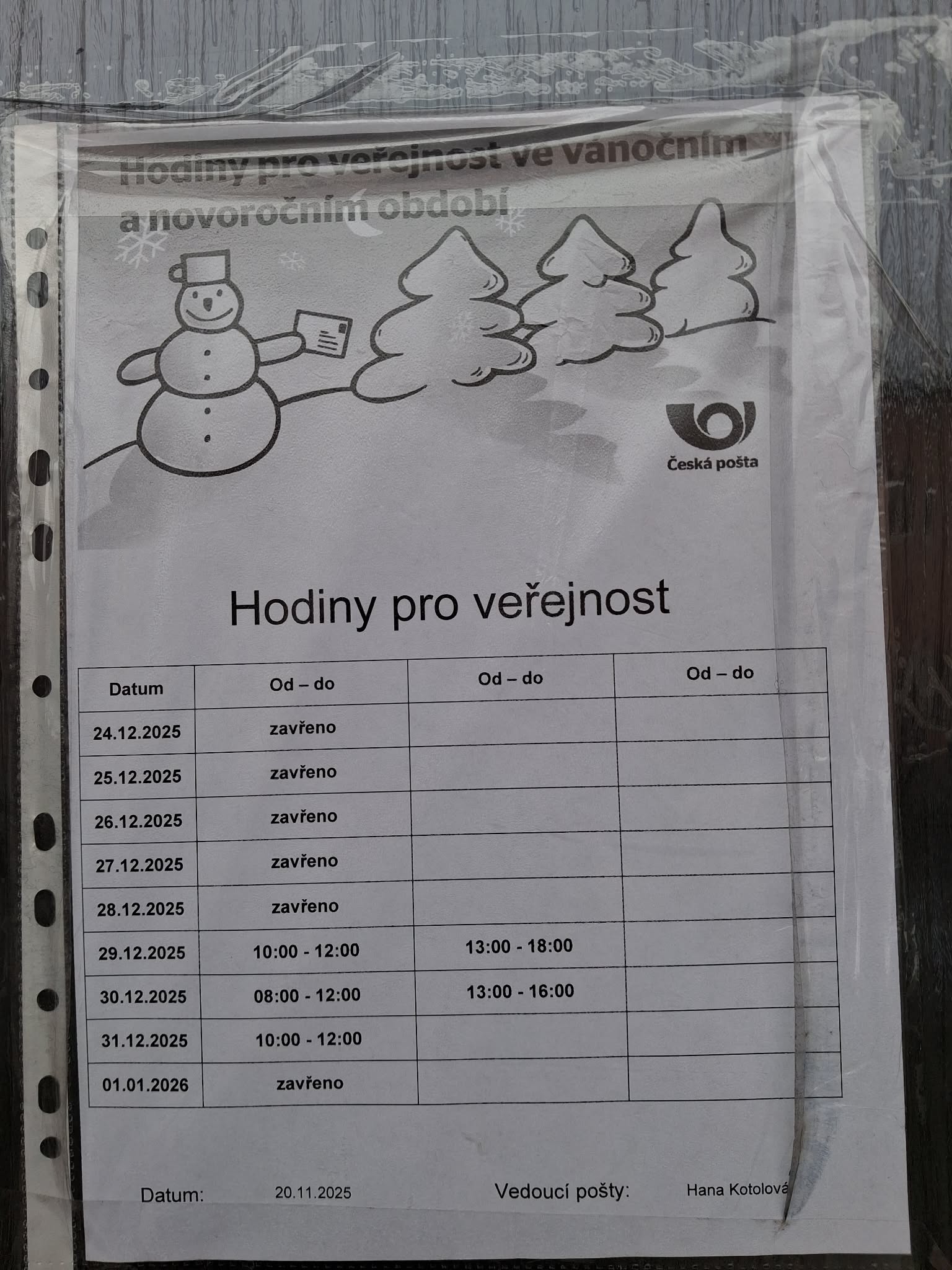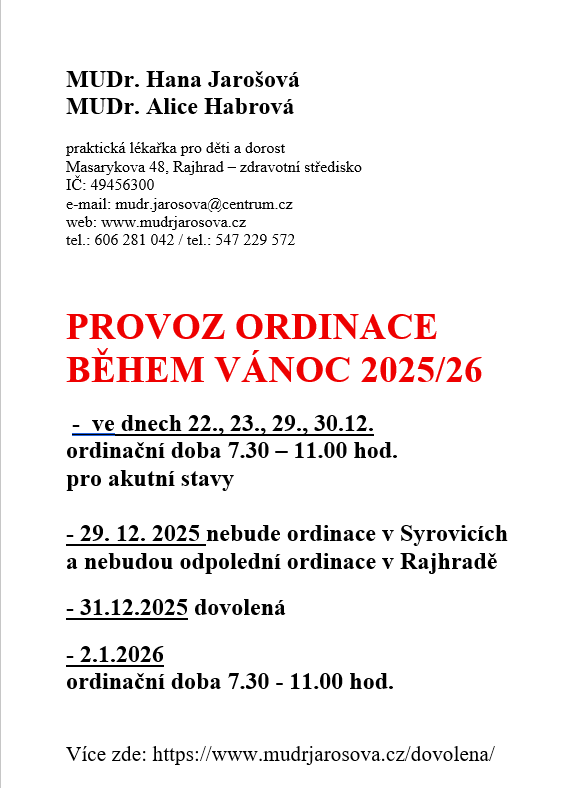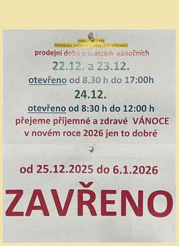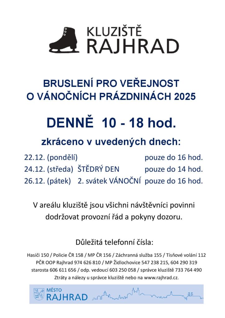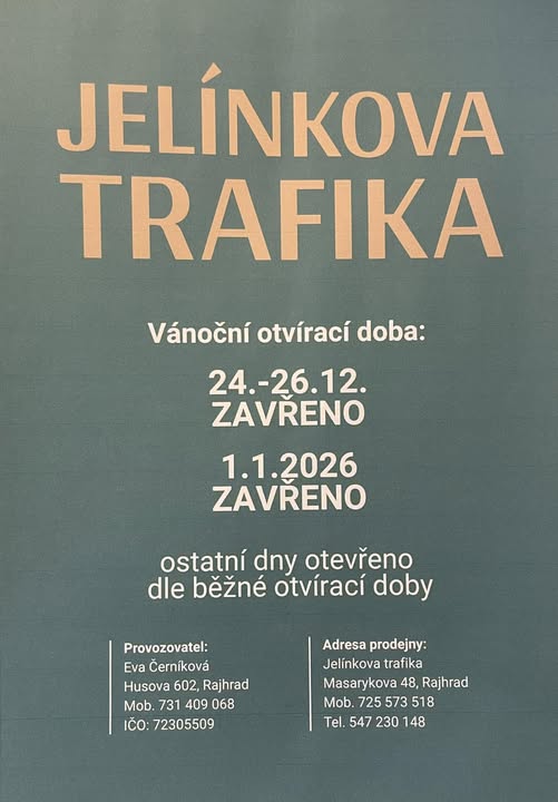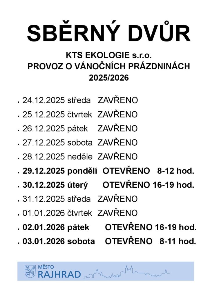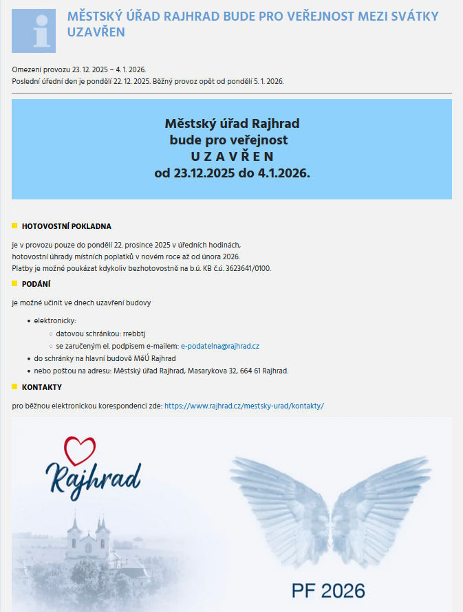 RAJHRAD / upravené provozní doby služeb v Rajhradě poslední dny konce roku 2025
