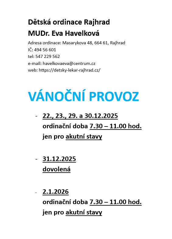 PROVOZ v Rajhradě o vánočních prázdninách 2025