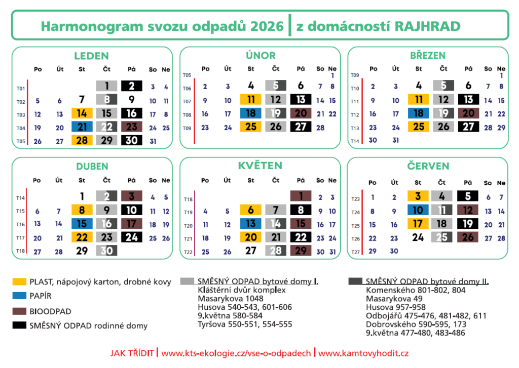 RAJHRAD / ST: PLAST 14.1.,28.1., PAPÍR 21.1., ČT: SMĚS BD: dle rozpisu I.a II. / PÁ: BIO 23.1., SMĚS RD 2.1.,16.1., 30.1.