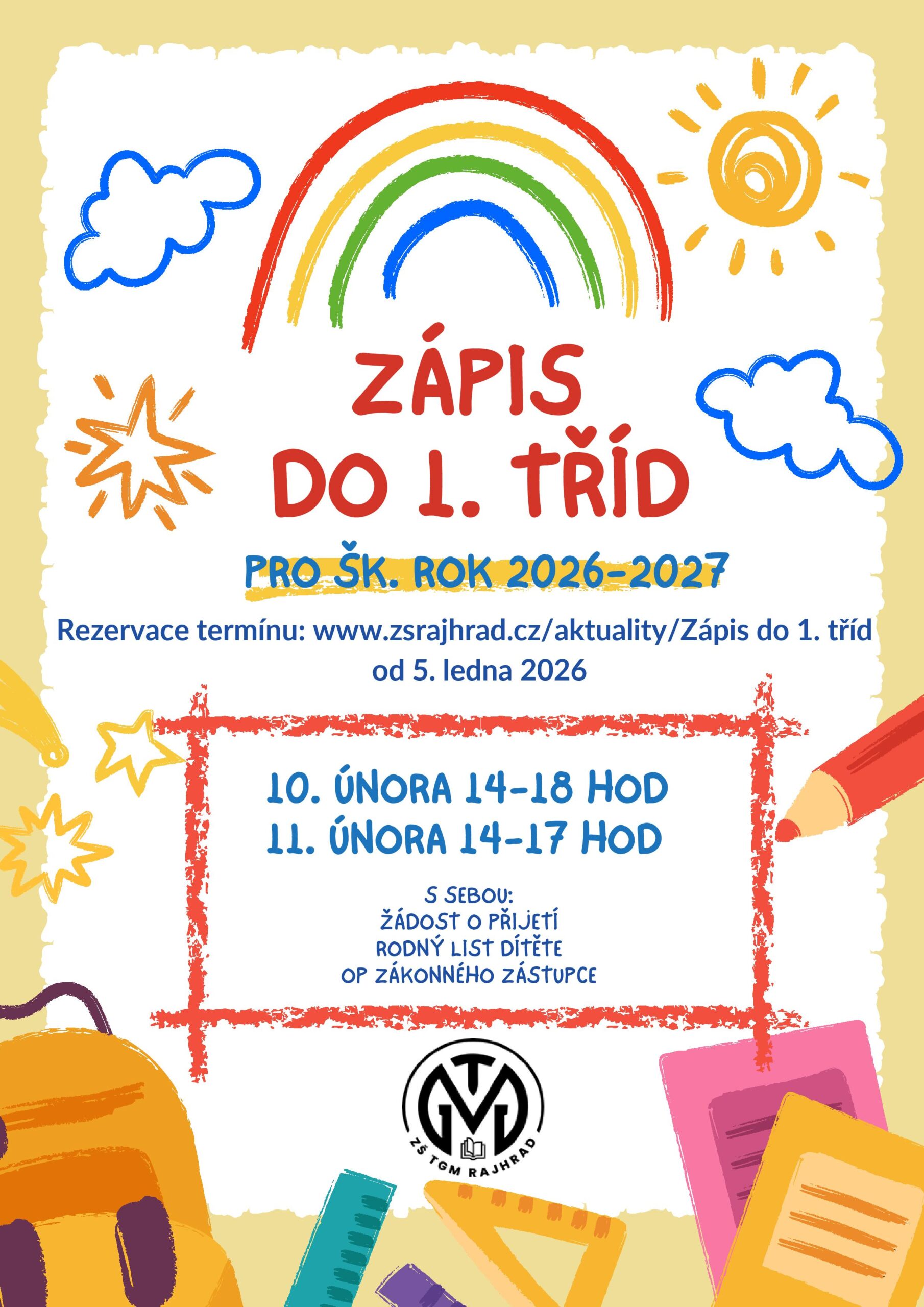 - ZŠ TGM – zápis žáků do 1. třídy v budově Havlíčkova, v úterý 14-18 hod.