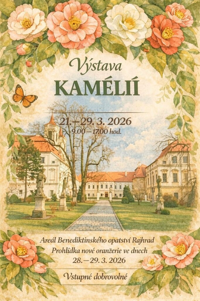 Rajhradští benediktini zvou všechny zblízka i daleka ve dnech 21.-29.3.2026, vždy od 9 do 17 hod. na již tradiční výstavu rozkvetlých keřů kamélií. Kamélie najdete v klášterních chodbách, vchod přes klášterní obchůdek, vstup dobrovolný.