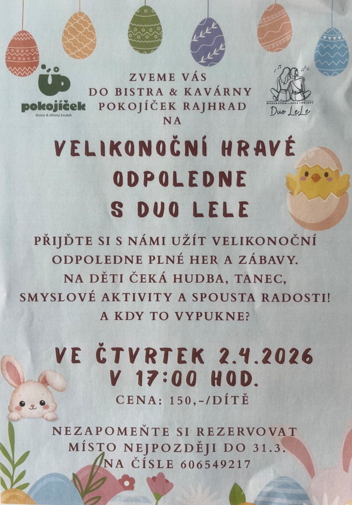 RAJHRAD / bistro a kavárna s dětským koutkem POKOJÍČEK RAJHRAD / program pro děti s registrací / 17 hod. / 2.4.2026