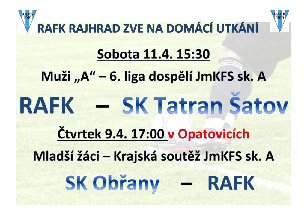 - sobota: APRÍLOVÝ TURNAJ družstev VE VOLEJBALE, TJ Sokol Rajhrad, sportovní hala, v 9 hod.