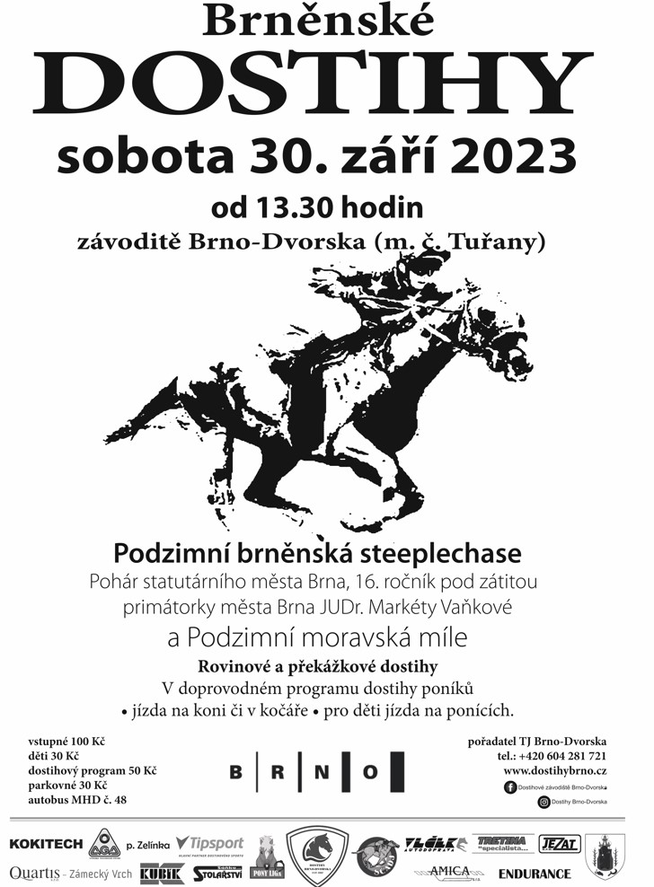 pořadatel: TJ Brno-Dvorska, FB: Dostihové závodiště Brno Dvorska, www.dostihybrno.cz