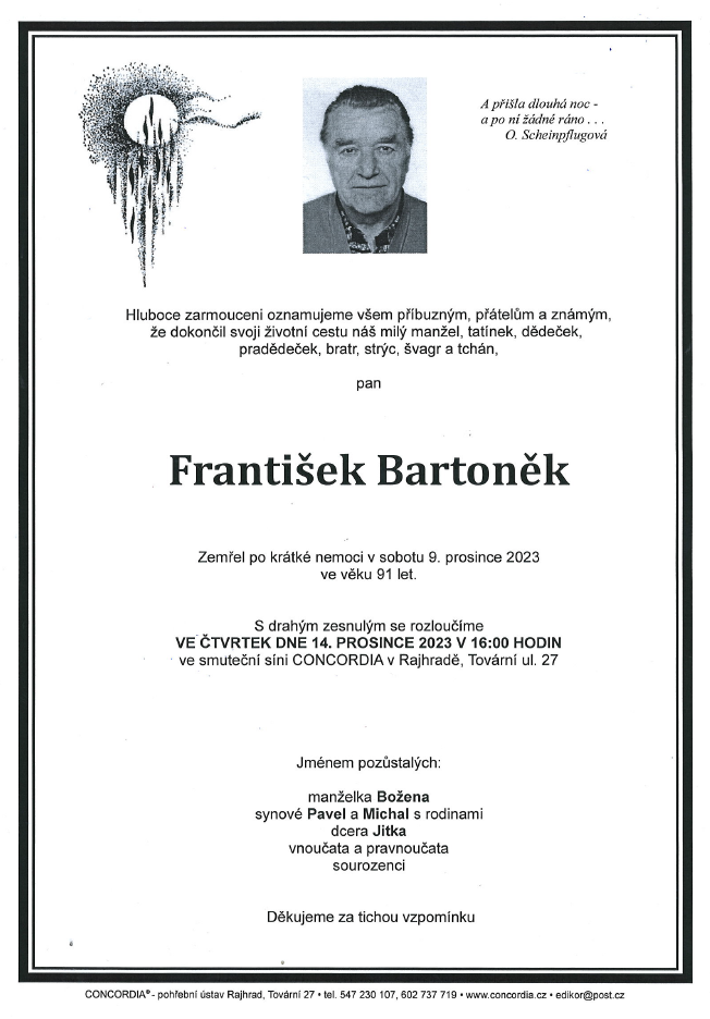 FRANTIŠEK BARTONĚK † 9.12.2023