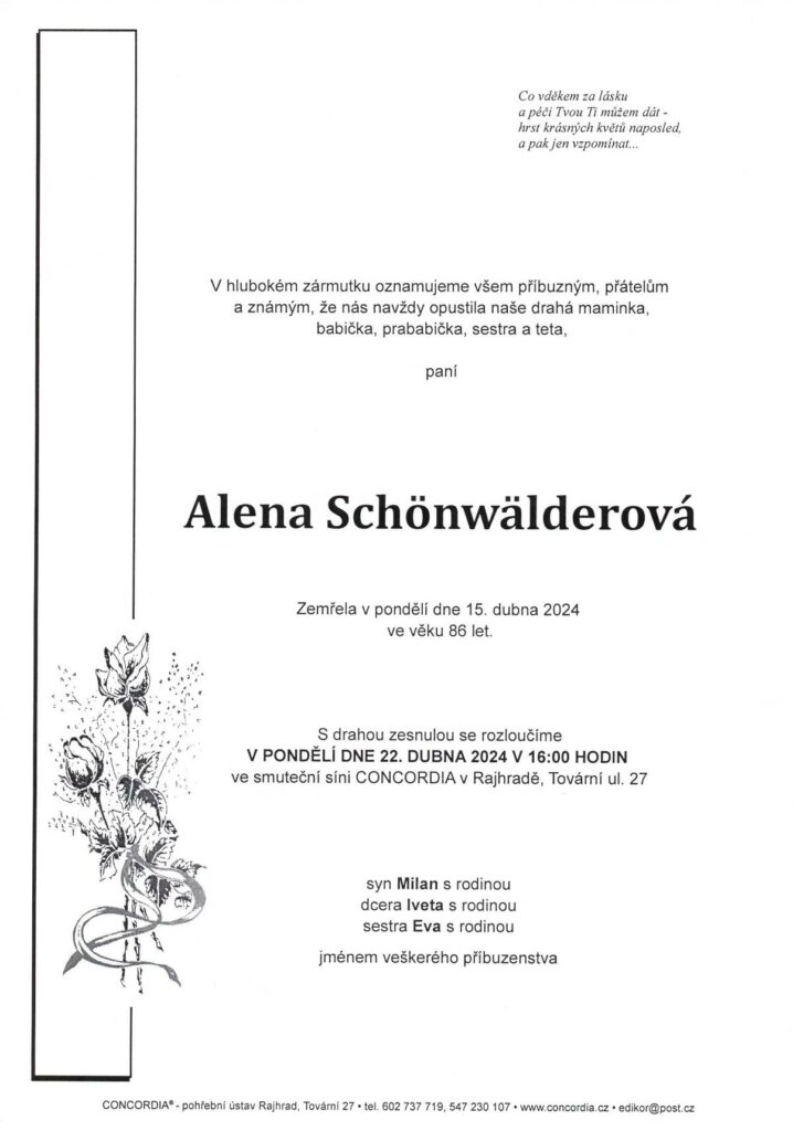 ALENA SCHÖNWÄLDEROVÁ † 15.04.2024