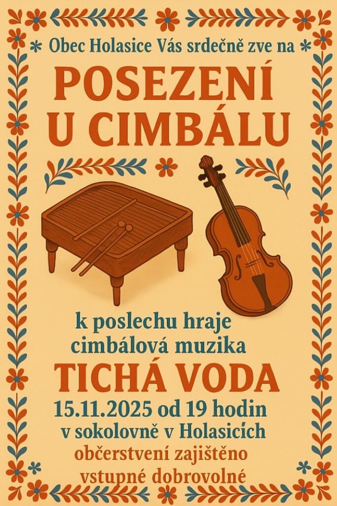 Obec Holasice Vás srdečně zve na Posezení u cimbálu.