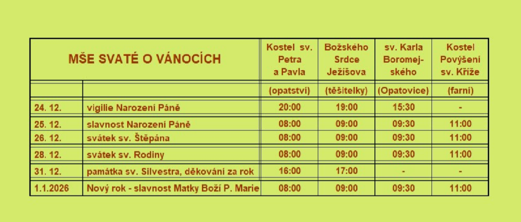 program bohoslužeb v období VÁNOC