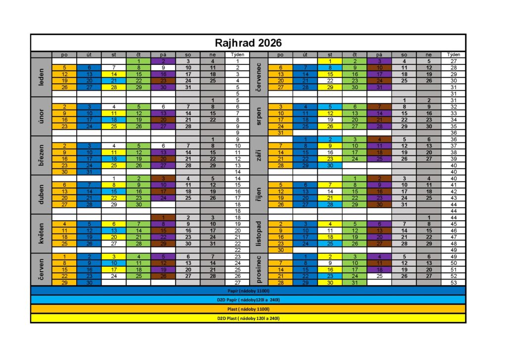 Harmonogram svozu odpadů z domácností pro rok 2026: