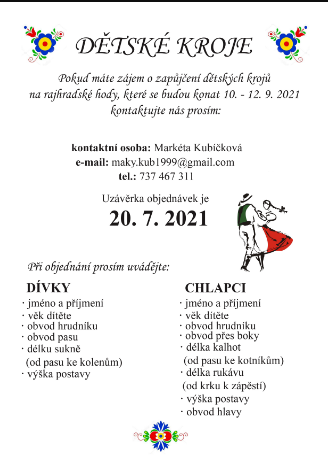 OBJEDNÁVÁME DĚTSKÉ KROJE NA ZÁŘIJOVÉ HODY