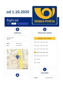 Česká pošta Rajhrad upravuje otevírací dobu od 1.10.2020