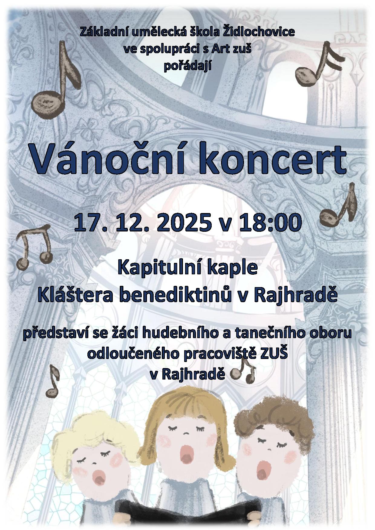 - STŘEDA: VÁNOČNÍ KONCERT ZUŠ Rajhrad – benediktinský klášter, kapitulní kaple v 18 hod.