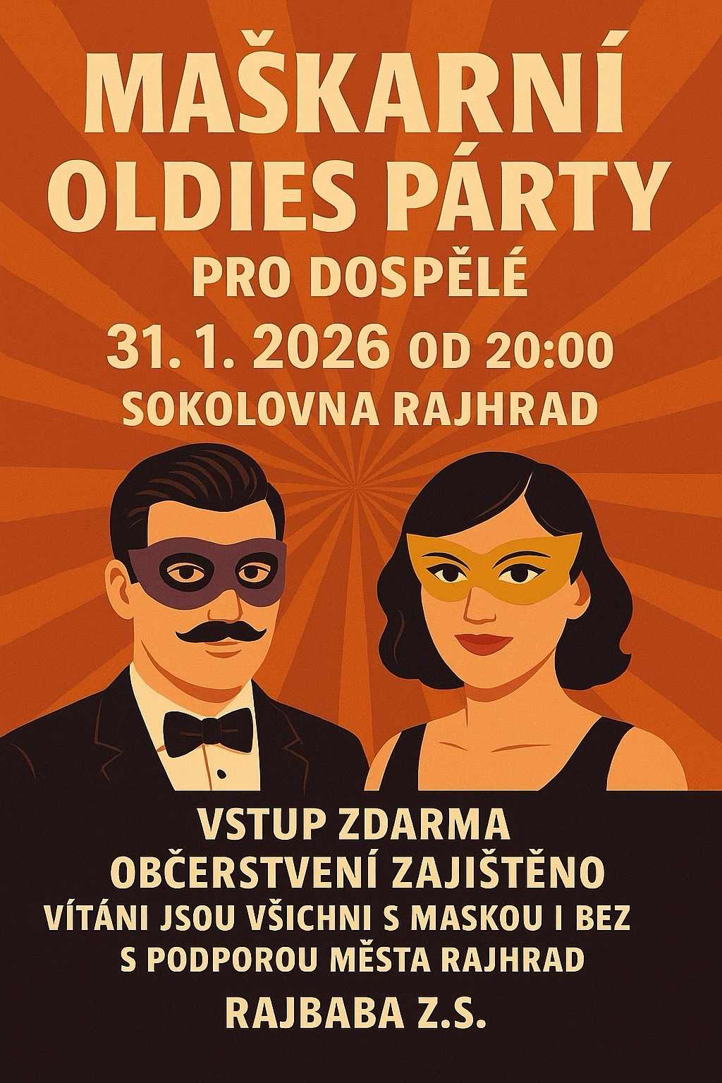 - MAŠKARNÍ OLDIES PÁRTY PRO DOSPĚLÉ, pořádá RajBaba / sokolovna, od 20 hod.