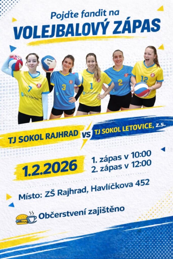 - VOLEJBALOVÝ ZÁPAS ŽEN, TJ Sokol Rajhrad x TJ Sokol Letovice / sportovní hala ZŠ Rajhrad, 10 hod. a 12 hod.