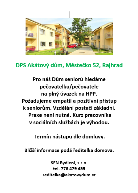 - L. Svoboda připravuje pro rajhradské zájemce speciální jazykové kurzy AJ a ŠJ, bližší informace sdělí osobně, kontakt na webu města