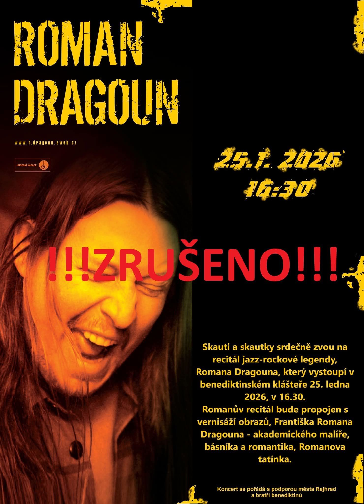 RECITÁL jazz-rockové legendy ROMANA DRAGOUNA, vstupenky nejsou v předprodeji, akce je spojena s vernisáží výstavy Františka Romana Dragouna - neděle, 19.00-20.30 hod. v sokolovně: